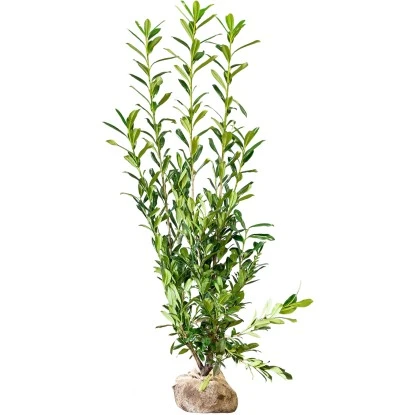 Der Kirschlorbeer (Prunus laurocerasus) ist ein immergrüner und winterharter Strauch, der mit aufrechten, weißen Blütentrauben im Mai/Juni blüht. Kirschlorbeer ist sehr schnittverträglich, weshalb er sich sehr gut für Hecken eignet. Er besitzt zudem eine gute Schattenverträglichkeit und ist generell sehr widerstandsfähig. Was Kirschlorbeer allerdings wenig mag, sind „nasse Füße“, also wenn sich Wasser über längere Zeit im Boden staut. Mit diesem Set erhalten Sie 15 Pflanzen, damit können Sie ca. 10 laufende Meter Hecke pflanzen.