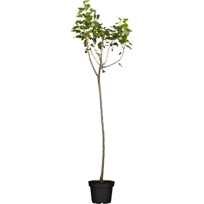 Die Bio Johannisbeere Schwarz (Ribes nigrum ) bildet schwarze Früchte mit einen angenehmen, süß – aromatischen Geschmack, welche ab Juli geerntet werden können. Johannisbeeren tragen am zwei-und dreijährigen Holz, zur Pflege sollten die abgeernteten ältesten Triebe, nach der Ernte am Ansatz entfernt werden. Nach dem Laubfall schneidet man 5 bis 8 kräftige Triebe bis auf ca. 5 Augen zurück, der Rest der Triebe wird entfernt. So erhält man die Kronenform des Stämmchens und die neuen Triebe haben Platz, Licht und Luft sich neu zu entfalten.