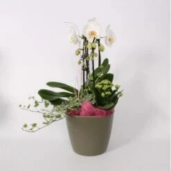 Orchideen-Arrangement Im Ovalen Keramik-Gefäß Topf-Ø Ca. 40 Cm