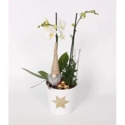 Orchideen-Arrangement Im Keramik-Gefäß Mit Stern-PrintTopf-Ø Ca. 14 Cm